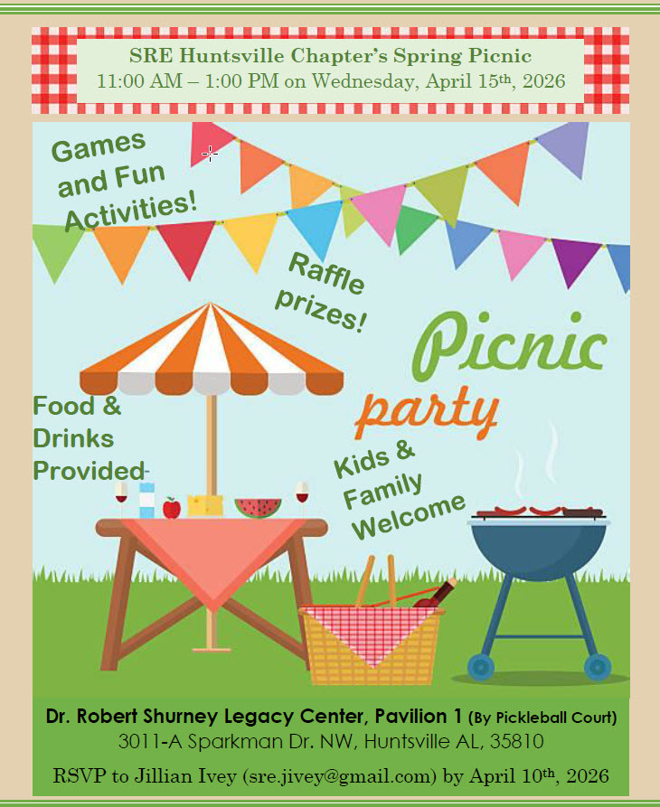 We’re excited to invite you to our upcoming Huntsville SRE Summer Picnic! It will be a great chance to relax, socialize, and enjoy some fun with fellow members.